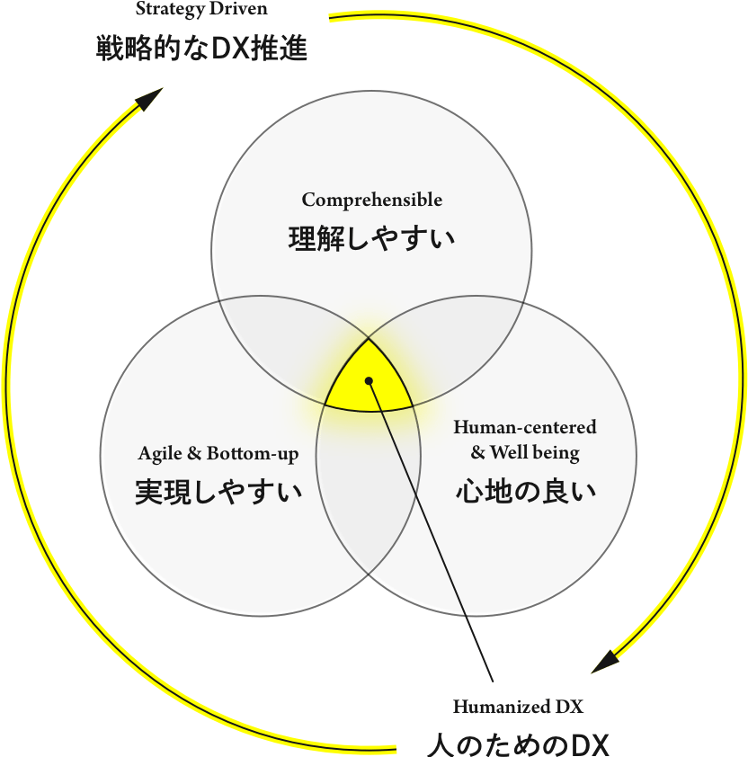 サービスデザインの手法を取り入れながら、使い心地の良いサービス体験を提供したり、人ではやり切れないことや苦手なことを手助けしたりすることで、より人間らしい働き方や暮らしを実現します。